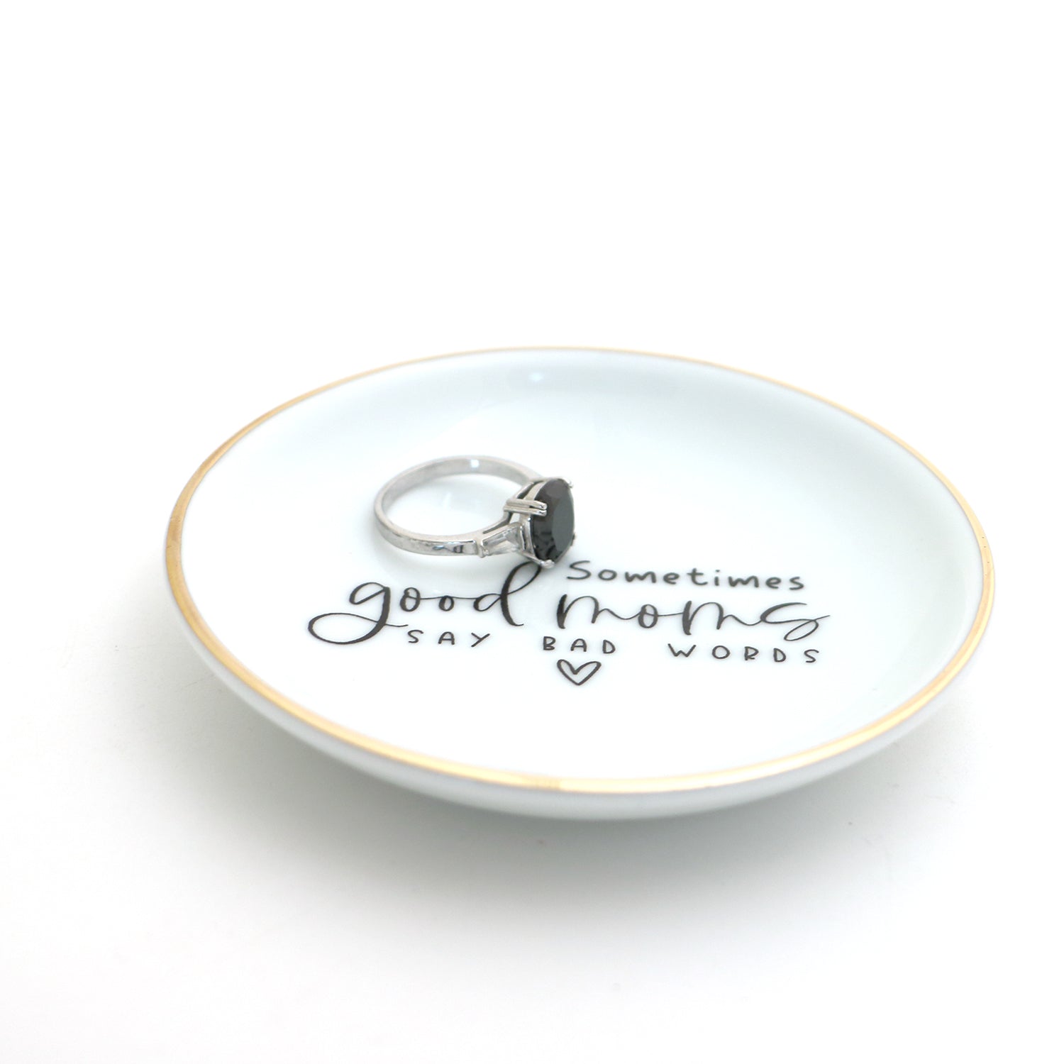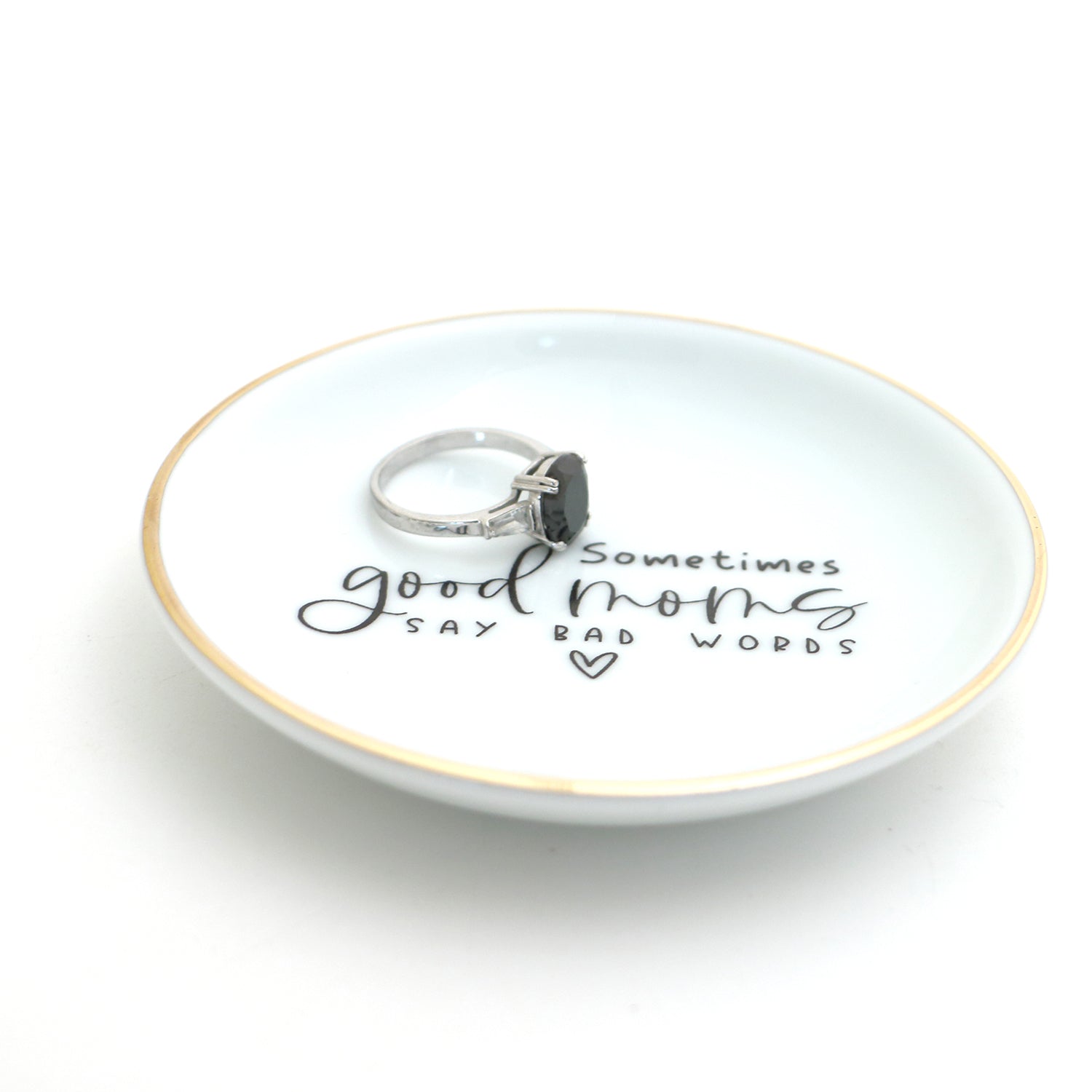 Good Moms Say Bad Words Ring Dish,with 22K Gold, ring holder, trinket dish