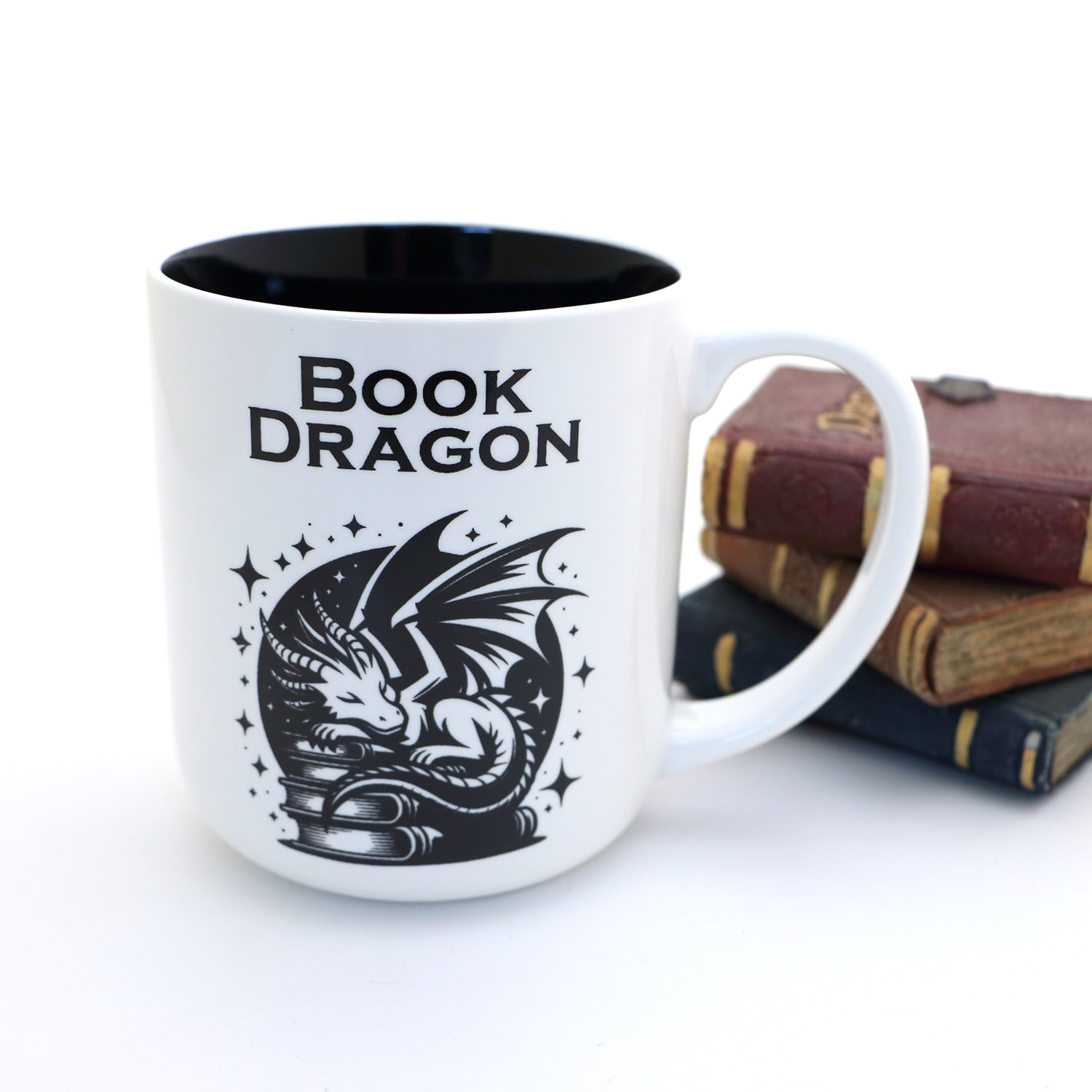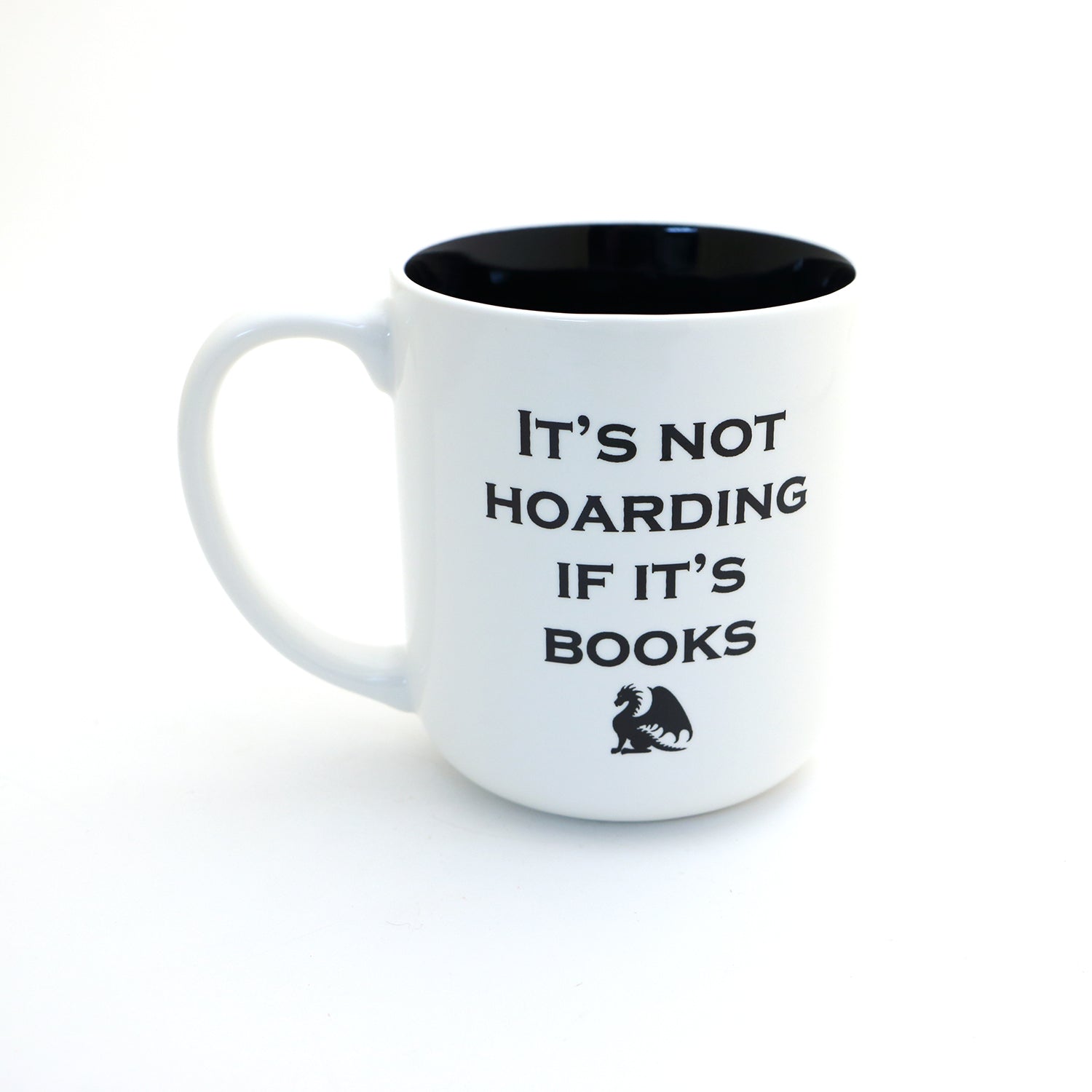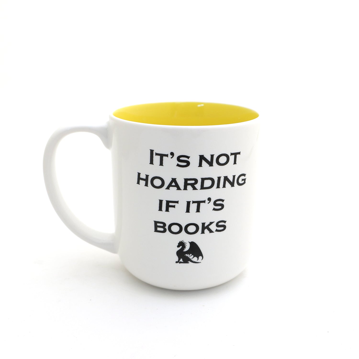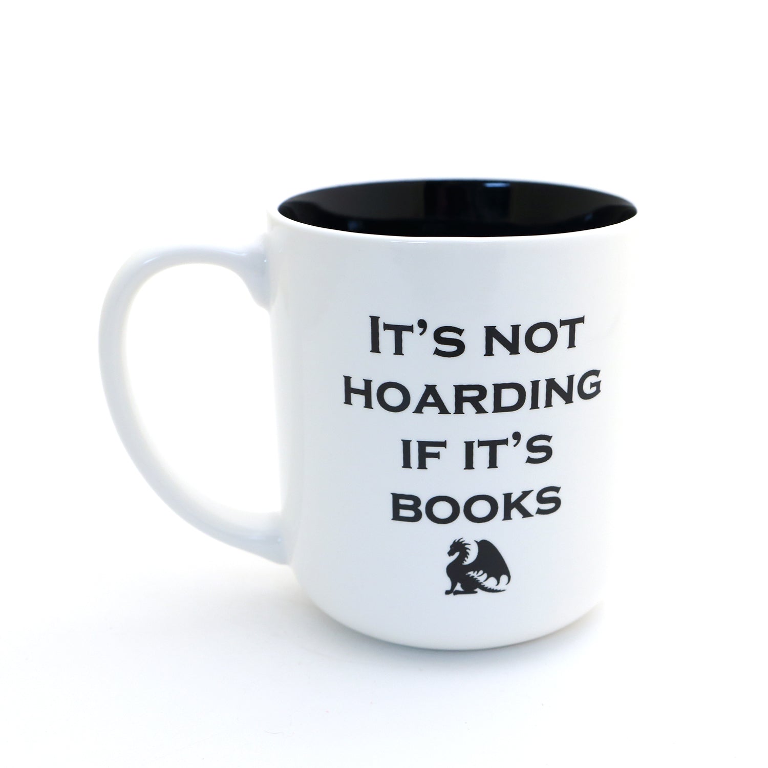 Book Dragon mug- remember, It's Not Hoarding if it's Books! Protect your treasures and your TBR pile. There's no such thing as too many books. (We know you just need more book cases!) Great gift for a reader and book lover. This is a handmade ceramic mug created by me in my New Jersey studio. This is a stoneware mug measuring 4 x 4. Kiln fired, lead free glazes. Holds 16 oz. Dishwasher and microwave safe.