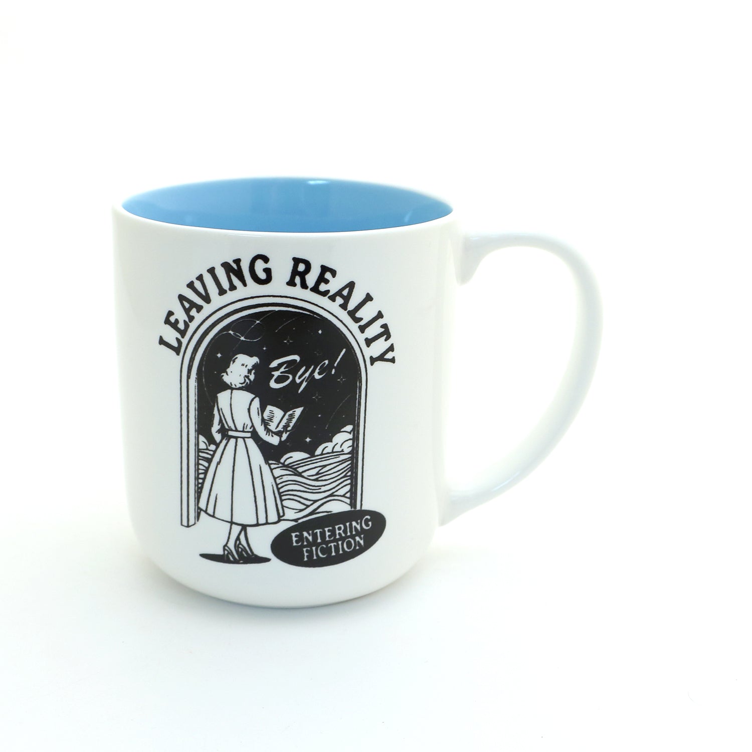 Leaving Reality Entering Fiction mug is a great gift for a reader who is transported by books. Back reads: Books Can Literally Take You Anywhere. This is a handmade ceramic mug created by me in my New Jersey studio. This is a stoneware mug measuring 4 x 4. Interior is a soft blue. Kiln fired, lead free glazes. Holds 16 oz. Dishwasher and microwave safe. Perfect for a cup of tea or coffee as you curl up with a favorite story.